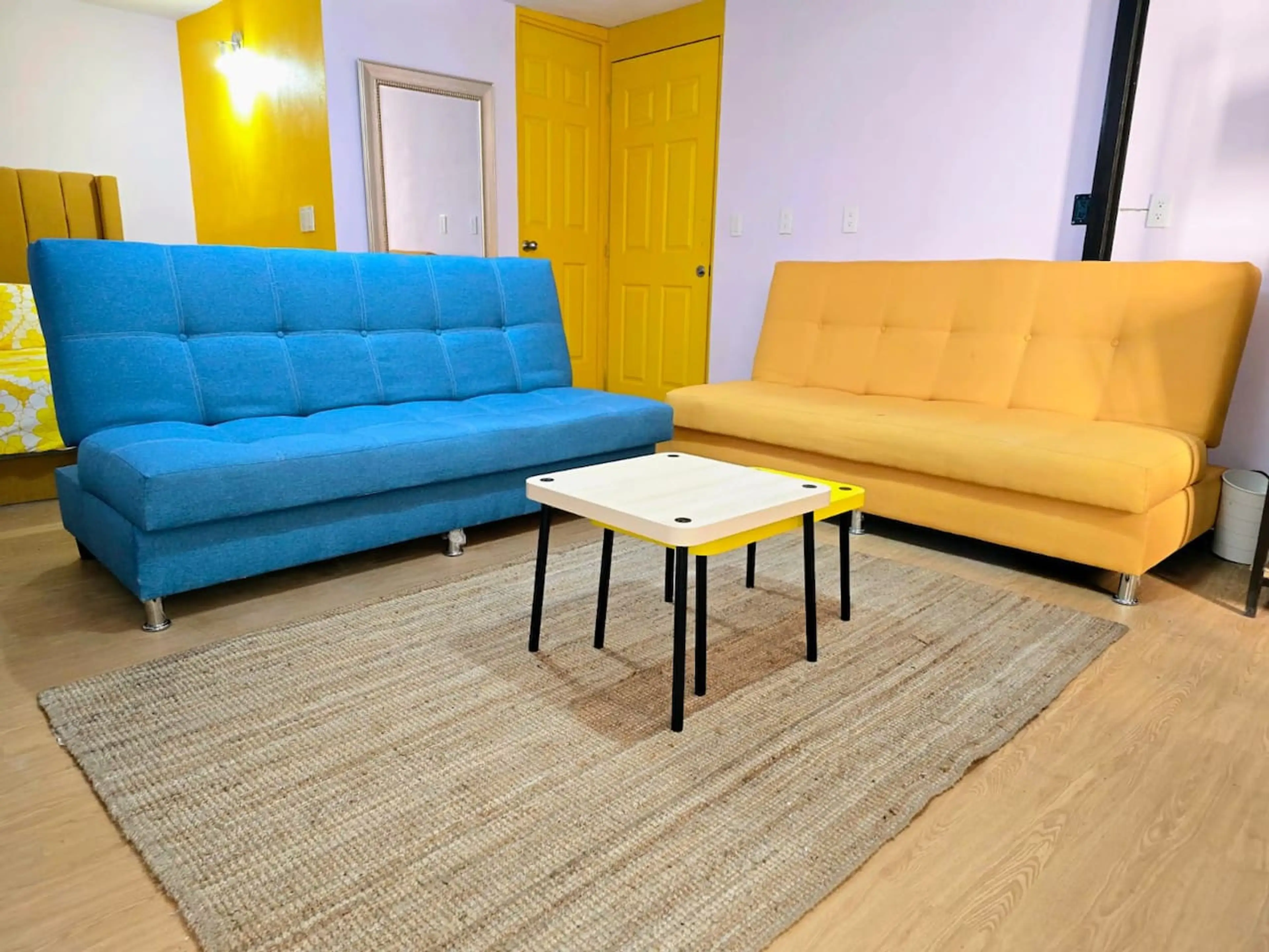 La Suite Amarilla hospeda hasta 6 personas con comodidad. Cuenta con cama matrimonial, dos sofás cama matrimoniales, comedor y cocineta equipada (microondas, refrigerador, parrilla, tostador, cafetera y utensilios). TV con más de 200 canales, WiFi, ducha privada y excelente iluminación. Espacio perf...